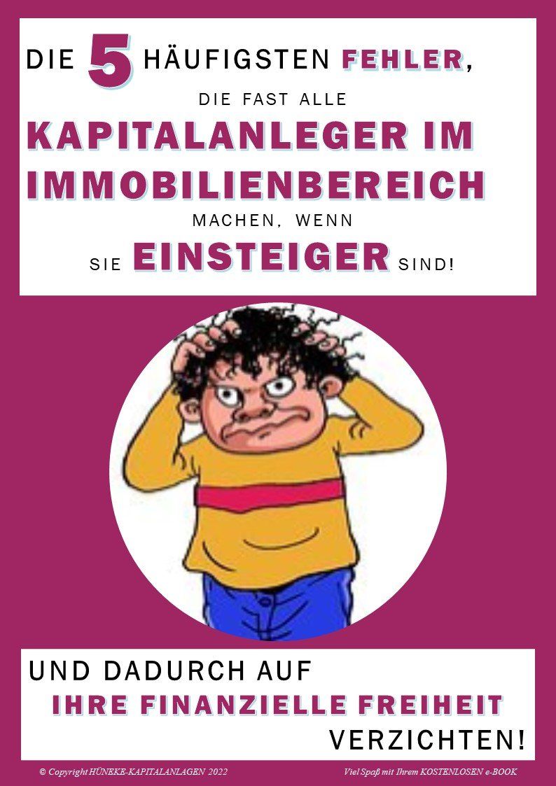 Laden Sie sich jetzt gratis mein e-Book herunter: „Die 5 häufigsten Fehler, die fast alle Kapitalanleger im Immobilienbereich machen, wenn sie Einsteiger sind.“
